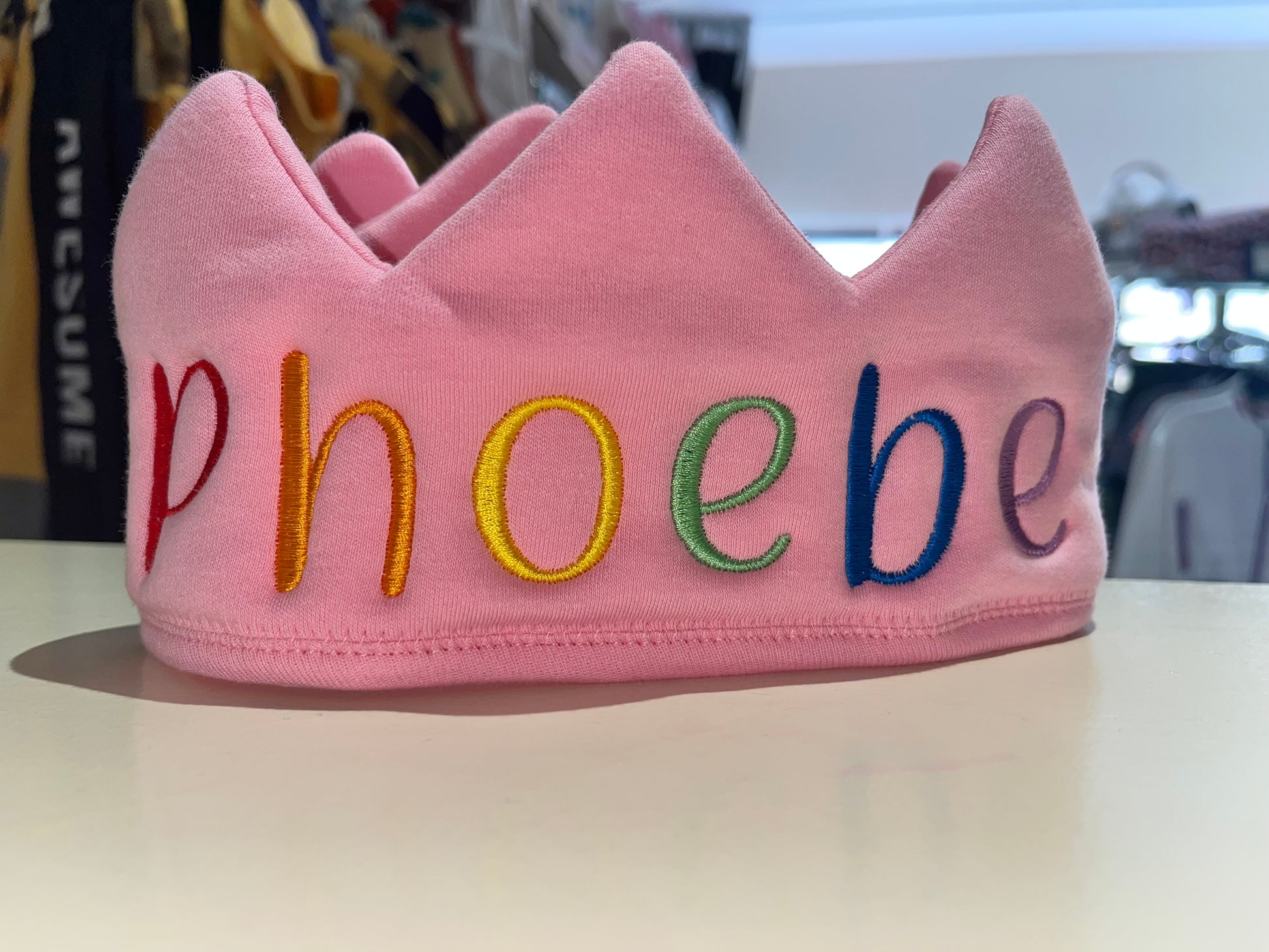 Personalised crowns perfect for birthdays or dressing up! Crowns come in pink, white or blue with a choice of thread colours. Velcro helps these crowns fit up to approximately 6 years.